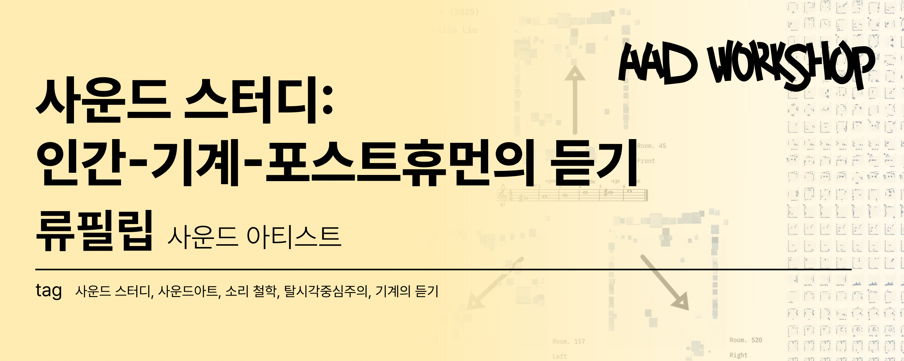 이 워크숍에서는 소리의 본질(존재론), 우리의 지각 방식(인지론), 그리고 기술과 함께 변화해 온 역사(기술사)까지, 사운드를 둘러싼 다각적 풍경을 살펴봅니다.